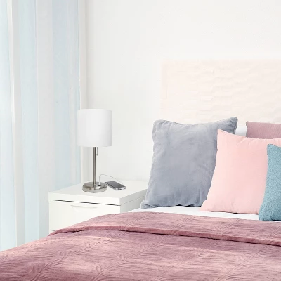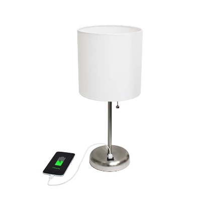 19.5″ Bedside USB Port Feature Metal Table Desk Lamp Brushed Steel With White Fabric Shade – Creekwood Home