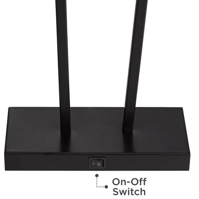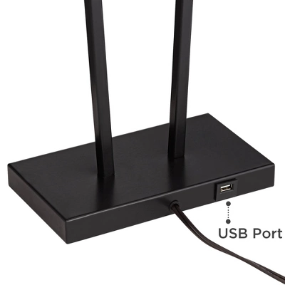 Elegantly modern, these contemporary table lamps are a superb choice for side tables or nightstands. Black finish metal creates a bold look while thin, angular supports ensure a light look and feel. The design is then topped with a square shade to complete its angular appeal. Each lamp has a USB port built into the base, perfect for charging handheld electronics.