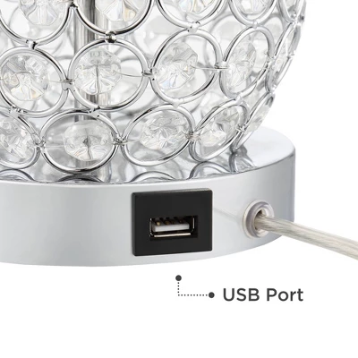 With a chrome finish, this set of two Sergio accent table lamps with USB port from 360 Lighting is sleek and neutral. Decorated with acrylic accents, these lamps are designed to be eye-catching in any setting. Each lamp features a USB port for convenience.