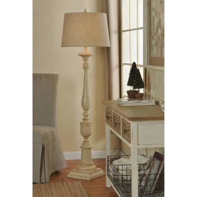 Accent your home décor with this floor lamp from the Signature Collection by StyleCraft Home Collection. When you need more light in a living room or bedroom, look no further than this polyresin floor lamp. It stands tall, and light shines magnificently through the round, hardback heather oatmeal color shade. The slender design makes it an ideal pick for any ensemble. This delightful floor lamp works wonderfully in practically any living room, home office or bedroom. This piece exemplifies superior product design and great styling. It will pair well with traditional styling. Regardless if you put it in the bedroom or family room, this floor lamp stands out. Suitable for residential use in a dry location. This floor lamp is UL listed in compliance with the nationally recognized safety standards. The lamp has a distressed beige finish and features a 3-way switch. A handpainted finish means each piece is unique, with possible slight variations. No two lamps are exactly alike. Due to lighting and monitor differences, actual colors and finishes may vary slightly from what appears online.