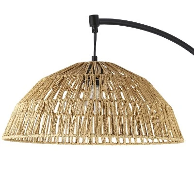 - Boho-style floor lamp in black and tan pairs well with a range of decor styles