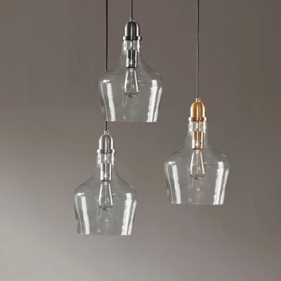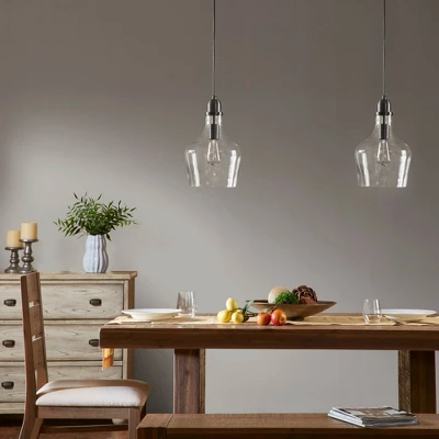13.5″ 3-Light Bee Modern Farmhouse Iron/Glass LED Pendant Oil Rubbed Bronze/Clear – JONATHAN Y