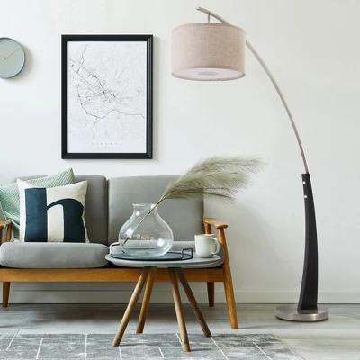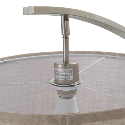 - Elevate your living room decor: our elegant arc floor lamp with the linen shade and the brushed steel metal base will add a touch of sophistication to your room, complementing your classic, rustic or modern decoration.