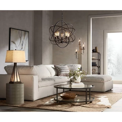 - Orb chandelier with an industrial look from the Franklin Iron Worksâ„¢ lighting brand.
