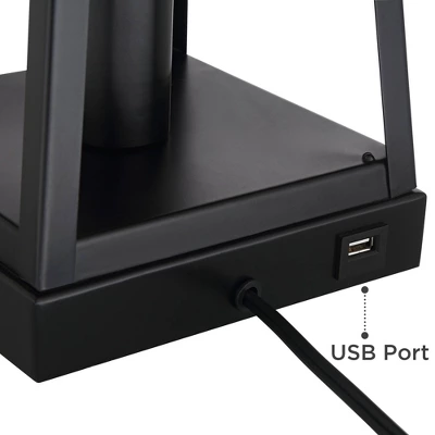 Franklin Iron Works Kacey Industrial Table Lamps 25 1/4″ High Set Of 2 Dark Metal With USB LED Nightlight Black Faux Silk Shade For Living Room Desk