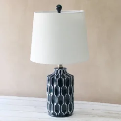 With a textured glass base and white fabric drum shade, this lamp is sure to update any room in your home with a little charm. This lovely lamp is crafted with an open bottom glass base in mercury. Perfect for adding the little refresh to your living room, bedroom, foyer or office that you’ve been looking for!
