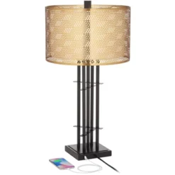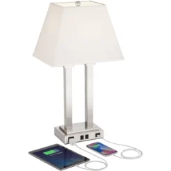 Possini Euro Design Charles Street Modern Desk Lamp 23″ High Chrome Satin Nickel Frosted Slump Glass Shade For Bedroom Living Room Bedside Nightstand