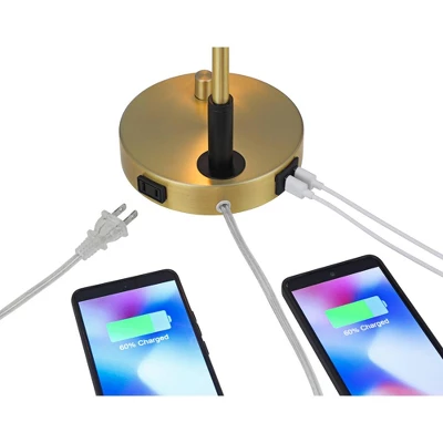 Perfect on a side table, nightstand or desk top, this stunning lamp pairs metallic finishes and a clear glass shade for an updated classic look. From the Possini Euro Design collection, it also features integrated USB ports that allow you to charge a phone or small electronic device as well as a built-in power outlet handy for additional plug options. Convenient on/off rotary switch on the base.