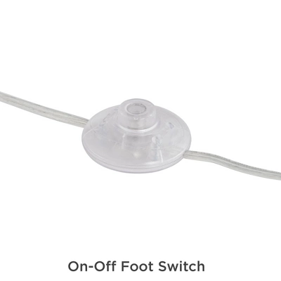 - Standard medium base socket rated up to 60 watts. 8′ clear silver cord. On/off step switch located 34″ from base.