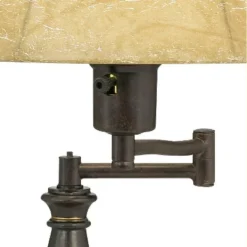 Add light and attractive style to any room with this bronze table lamp. The design is attractive with a beautiful hammered texture. Topped with a natural linen empire shade that brings angular balance.