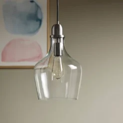 Amelia 1-Light Matte Brass Plug-In Pendant Lighting With Frosted Glass Shade – Globe Electric