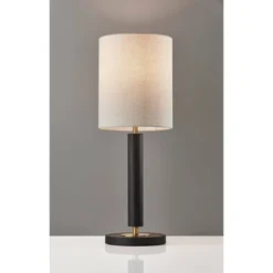 - The lamps are topped off with ivory drum shaped fabric shades for a modern rustic style